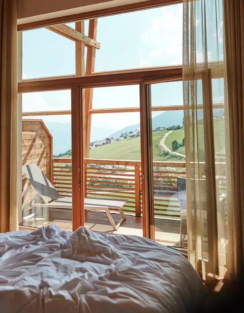 1,400 metres above the daily grind, where true luxury is revealed in simplicity and vastness, in silence and closeness to nature. The unobstructed vista over the peaks of the Dolomites. The slower pace as you immerse yourself in the scents of the forest, the colours of Alpine flowers, and the heart-warming song of birds.