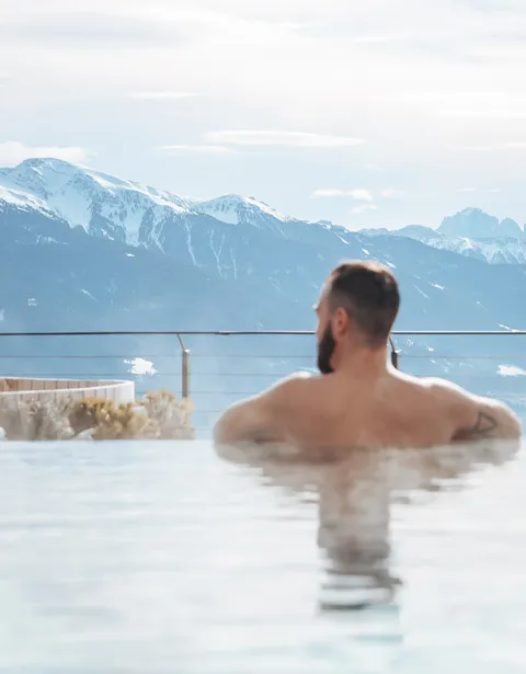 Floating Deluxe. Inmitten eines traumhaften Freiluft-Wohnzimmers. Wer zwischen all den Wellnesshotels mit Infinity Pool ehrlich-besondere Erlebnisse sucht, ist im Biohotel Gitschberg angekommen. In der Natur und bei sich selbst. Reines Bergquellwasser, nach Grander vitalisiert und nachhaltig beheizt. Dazu unendliche Gipfelblicke und pures Freiheitsgefühl. Erfrischend, wohltuend, kraftvoll. Besonders.